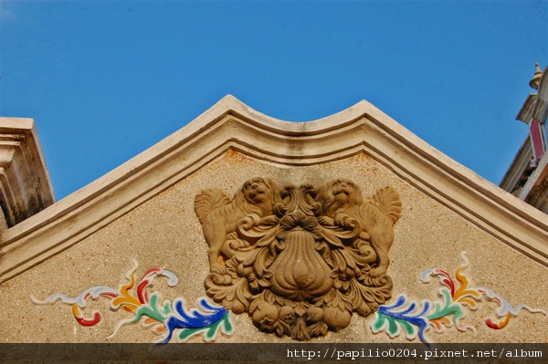 當初施作的匠師一定花費很大的精神讓這些帶著獨特性格的現有裝飾配件看起來協調。異國風情的天使、獸頭,要跟閩南傳統的綠釉花瓶狀欄杆搭配起來不顯突兀並不容易,但這棟洋樓辦到了,而且融合成為一種對調協調的美感,讓整個建築給人繁複華麗的印象,凝視它的感覺就像是品嘗一杯調和中西品味的濃烈醇酒一樣。